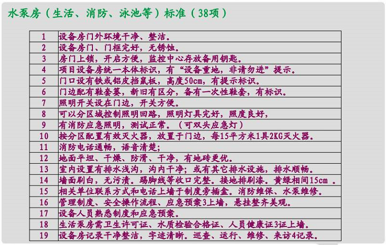 通过图文和表格方式分析家和盛物业供配电房、水泵房和电梯机房管理标准。
